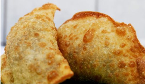- Pastéis- chicken, onion, tomatoes, corn, cream cheese, black pepper, oregano, adobo seasoning, Goya discos (dough), and oil.